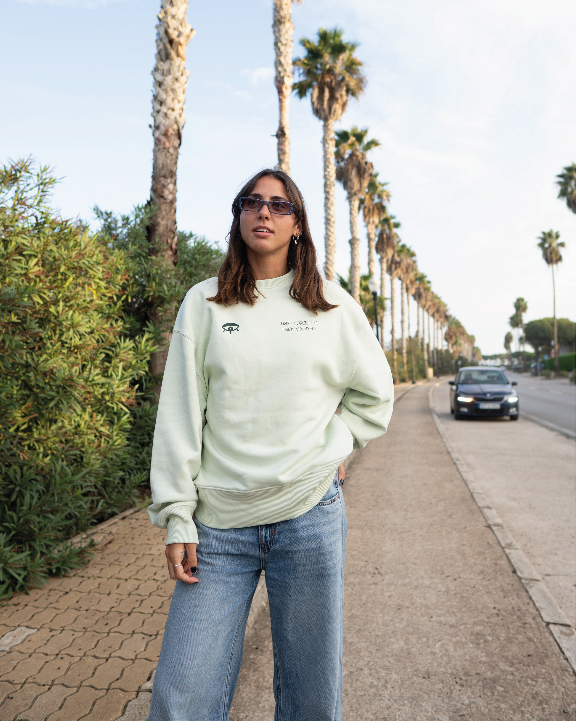 Colección FW24. Su corte holgado y alto gramaje la hace una sudadera única. Color de sudadera verde claro con diseño serigrafiado a mano color verde oscuro. Una sudadera clásica que refleja nuestros valores, manteniendo la esencia como siempre.