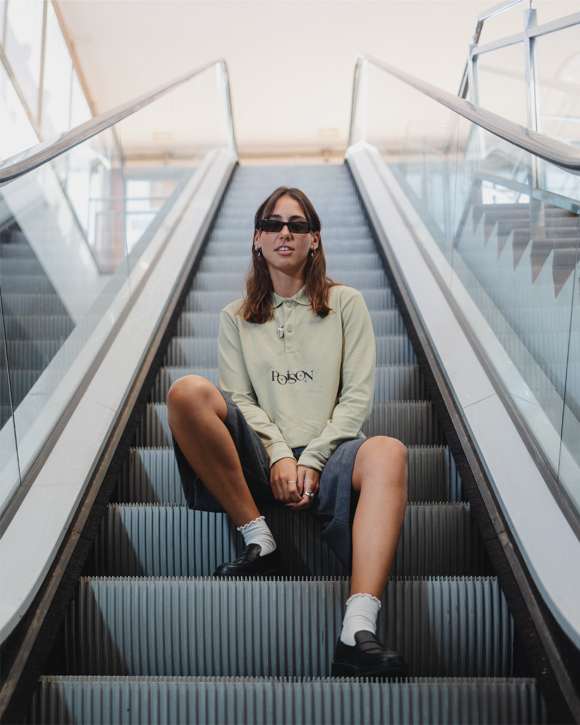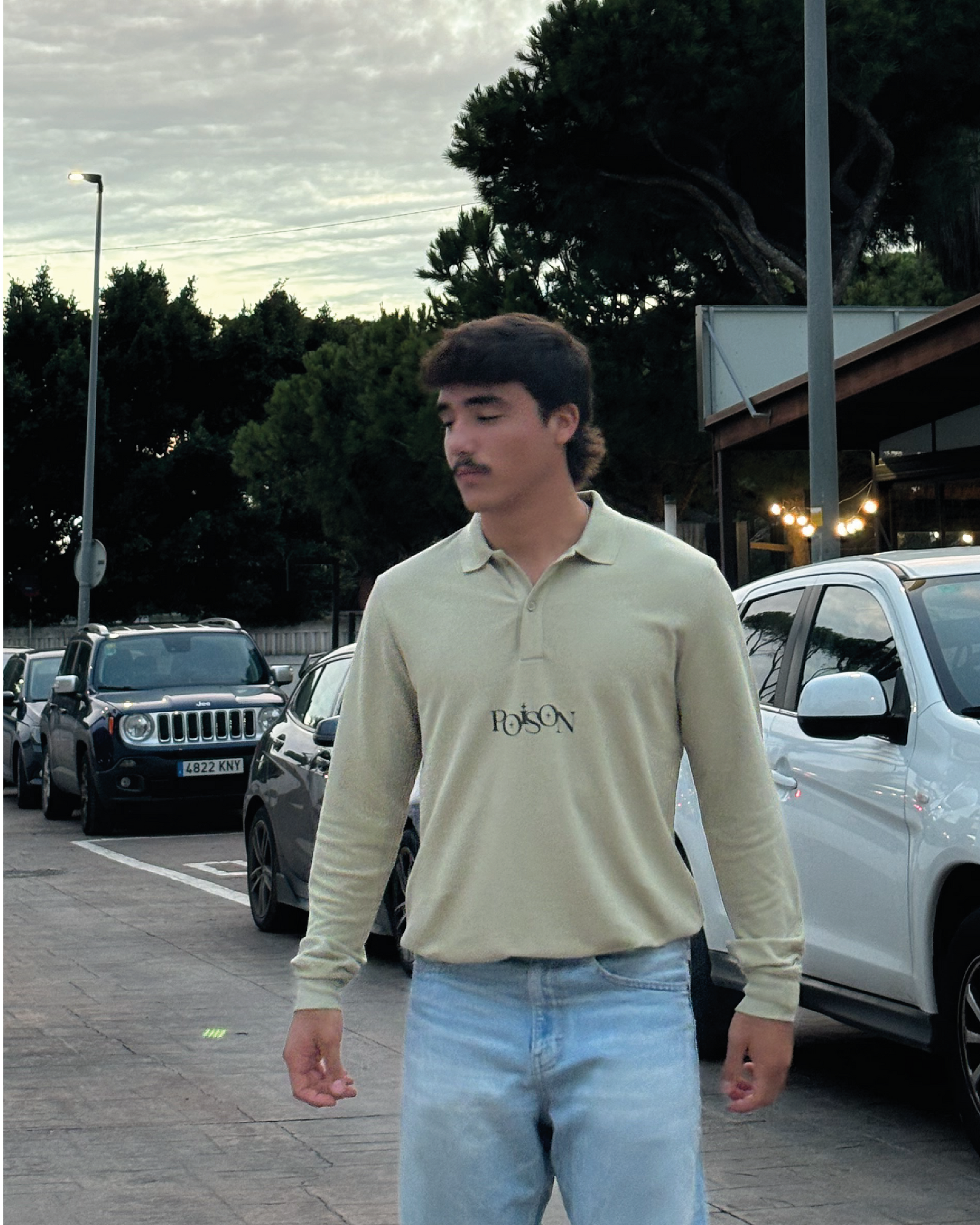 Colección FW24 de Poison. Polo de manga larga color verde palo con serigrafía a mano central color negro, etiqueta lateral que ofrece a la prenda un toque único y premium. Una prenda única con muchísima personalidad.