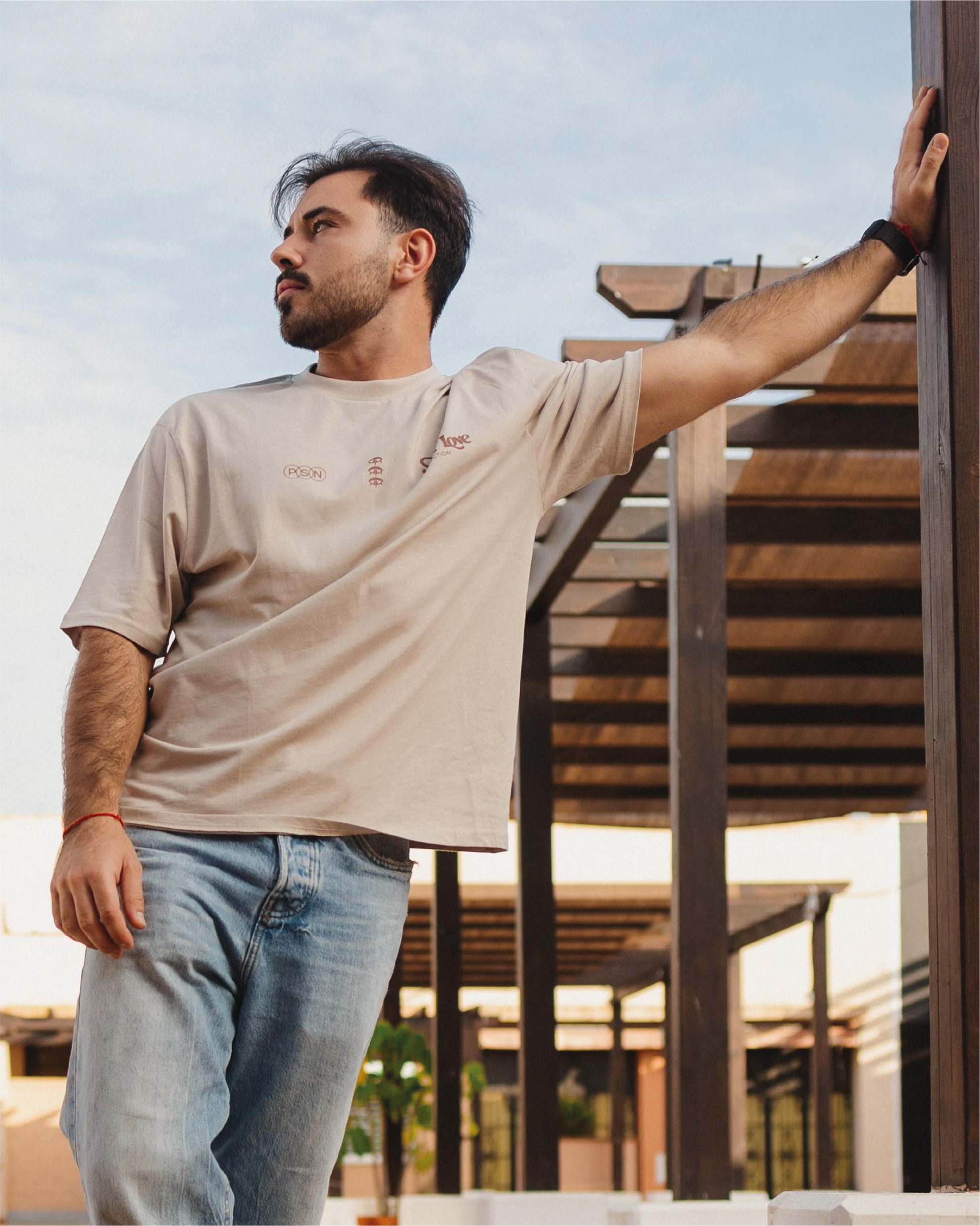 Colección FW24 de Poison. Su corte holgado y alta calidad de material la hace una camiseta única. Color de camiseta beige con diseño serigrafiado a mano marrón chocolate. Un básico para tu armario.